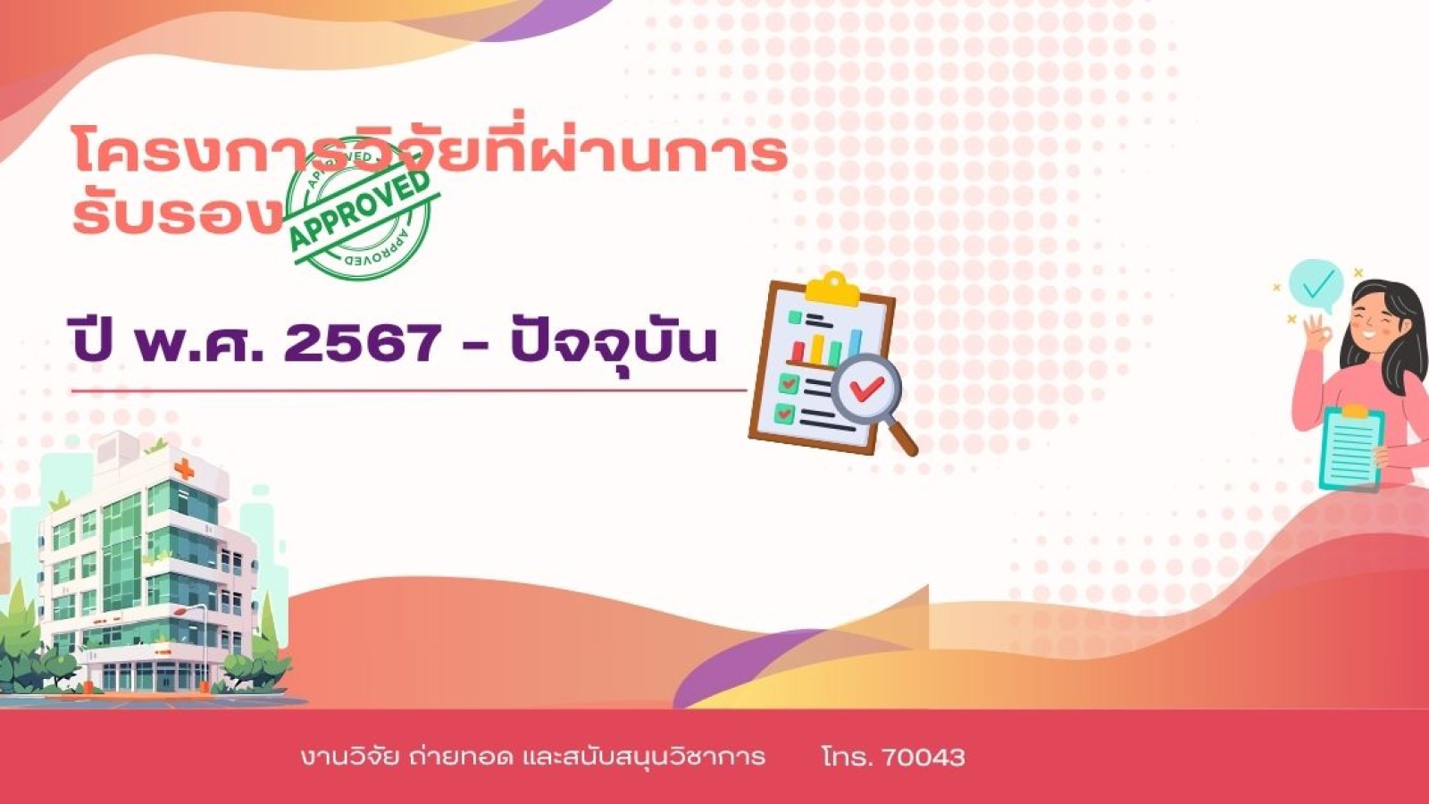 โครงการวิจัยที่ผ่านการรับรองจากคณะกรรมการจริยธรรมการวิจัยในมนุษย์ โรงพยาบาลราชวิถี 2 (รังสิต)